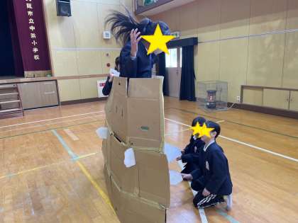 飛び出すときには、6年生が大きな声で「うわぁ!!」と大きな声で驚かしていました。盛り上げるために全力でパフォーマンスをする6年生!!さすがです!!