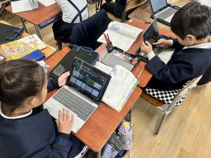 学習者用端末を使って、反対語の問題を発表ボードでみんなに発表していました。