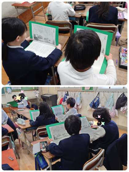 国語の時間にペアになってまる読みをしていました。学級全体の雰囲気がやる気満々で、いい感じで学習に取り組んでいるのが伝わってきました。担任の先生が、学習の進め方を工夫しているのが子ども達にしっかり伝わっている学習タイムでした。