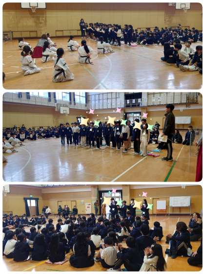 今日は、全校で発表会を楽しみました。各学年の応援メッセージはとても心がこもっていました。チングの会の子ども達は、いきいきと今までの練習の成果を発揮し、とっても上手でした。ステキでした。キラキラ輝いていました。