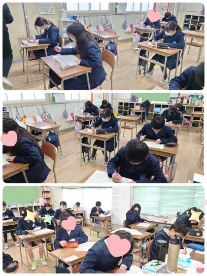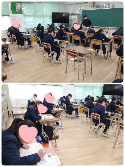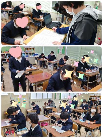6年の教室では今年度最後の国語のテスト、5年の教室では今年度最後の算数に取り組んでいました。1年間がんばってきた高学年。テストに取り組む姿も立派です。