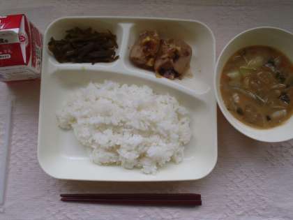 具だくさんの豚汁とごはんが進むまぐろの甘辛焼きをおかずに、今日もしっかり食べました。
