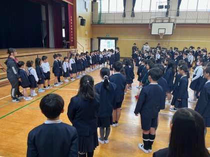 4月8日に無事入学式を終えた1年生が、今日は2年生から6年生までのお友だちに、新しくなかま入りをしました♪