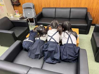 校長室に取材に来た2年生。興味津々に校長室を観察したり、校長先生に質問したりしています。