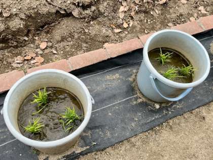 そんな学習園で、本日、5年生は稲を、2年生はトマトとさつまいもを植えました。