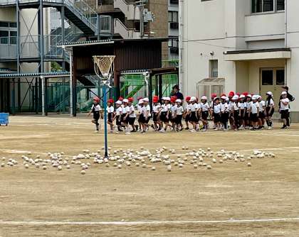玉入れも音楽に合わせて運動しています♪