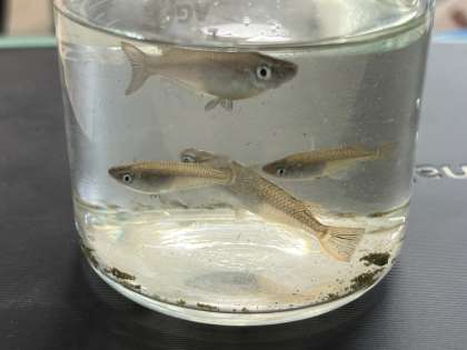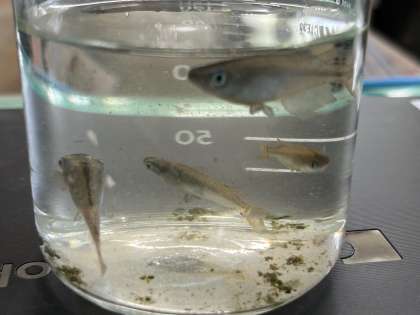 問題1 ビーカーの中で泳いでいる魚の名前は何でしょうか?