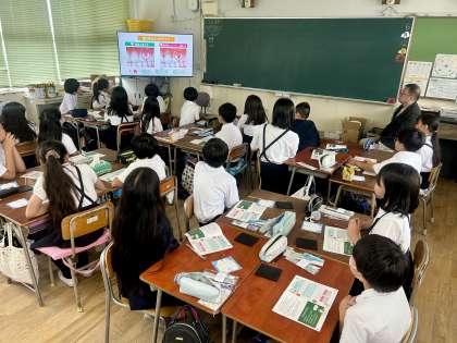 2時間目、歯科校医の松本先生をお呼びして5年生の歯磨き大会を実施しました。