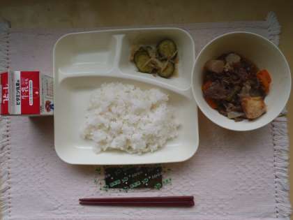 焼きのりは、上手におはしてくるっと巻いて食べる人、指でごはんに巻いて食べる人、ちぎってごはんに乗せてから食べる人、色々です。それに、おかずもちょっと乗せている人もいて、色々な味を作って味わっているなあと思います。