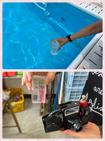 今回はプールの水質が安全かどうかの検査をしていただきました。