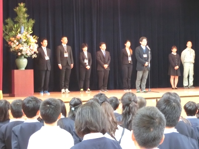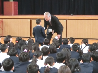 9時からは講堂で平成27年度末の人事異動により、新たに中浜小学校に着任された教職員の「着任式」【写真中】を行いました。7名の教職員が転退職され、8名の教職員をお迎えしました。※関連記事を参照。