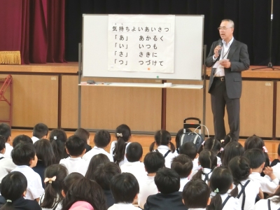 今日の児童朝会は、校長先生から「なぜ、あいさつをするの?」というお話でした。体育科のある高校の野球部とそこの生徒の話で「あいさつは人と人の心をつなぐ。チームワークは気持ちのよいあいさつから生まれる」ということでした。気持ちのよいあいさつというのは、「あかるく、いつも、さきに、つづけて」することが大切です。また係の先生からは5月の生活目標「学校のきまりをまもろう」について、中浜小学校の「時間をまもる」というよい伝統のお話がありました。
