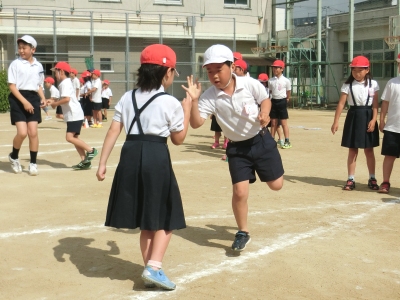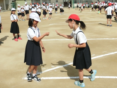 なかよし班の奇数班は白、偶数班は赤の紅白に分れて、陣取りゲームをしましたが、なかなか勝ち進むことができず、勝敗がつきませんでした。「集会委員会」では、毎週楽しいゲームを考えてくれています。