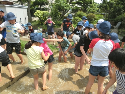 6月20日(月)5限、5年生は学習園の水田で「田植え」を行いました。今年も5月上旬に田んぼを耕しましたが、土壌中の酸素が不足し、嫌気性(酸素がない状態で生きる)の微生物が繁殖して、硫化水素ガスが発生し異臭を放っていました。活性炭等の薬剤を散布し、やっと臭いの原因を取り除くことができました。
