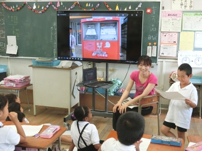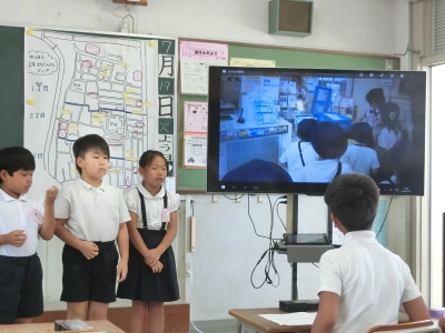 7月19日(火)2・3限、2年生では各学級ごとにICT機器を使って、6月30日に行った「町たんけん」の発表を行いました。
