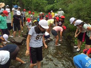 小川で「魚つかみ」 ≪林間学習(7)≫