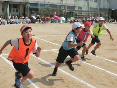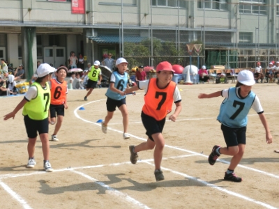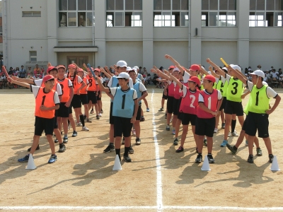 6年生の「紅白対抗リレー」は、全員が参加するリレーです。リオ五輪の陸上男子400mリレーの「侍Japan」のように、各チームともバトンと心をつないで最後まで走りました。