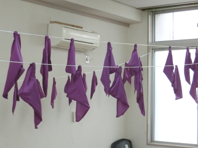 団体演技で使った「三角巾」【写真中】は、担任の先生が洗濯をして干していました。来年はどんなダンスをするのか、楽しみです。