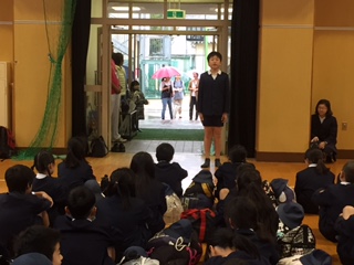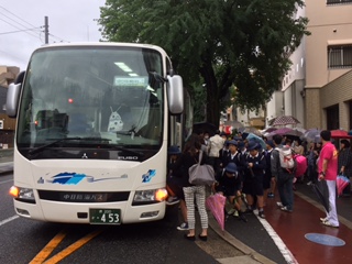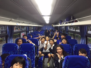 体育館で行った「出発式」では、校長先生から「思いやり、助け合いの気持ちを持って、小学校生活最高の思い出づくりをしよう。」というお話がありました。たくさんの保護者や教職員に見送られ、バスに乗り込み、7時30分に出発しました。現在、三重県には「大雨洪水警報」が発令されていますが、修学旅行が一路平安でありますように。