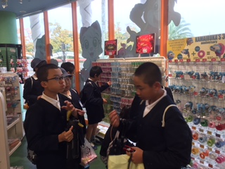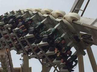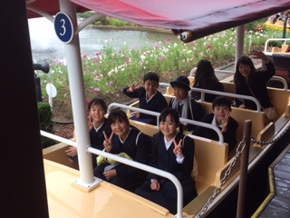 15時過ぎからはお土産を買っている活動班が多くありました。決まったおこづかいの範囲で、計算をしながら、品定めをしていました。15時40分、天候不良で止まっていた世界最大級のつり下げ式コースター「ピレネー」がやっと動きだし、10人程が乗ることができました。