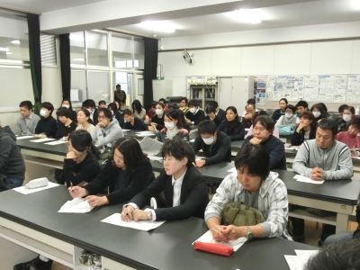 本校からは「民族学級とともに」というテーマで、一年間の取組や活動内容、子どもたちの様子などについて、実践報告を行いました。会場の理科室には、99名の先生方が参加されました。各学校における民族教育や国際理解教育の取組が報告され、交流を深めた研修会となりました。
