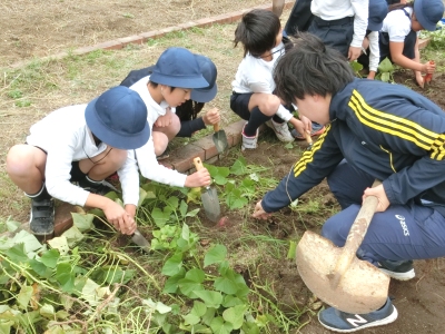 実りの秋「サツマイモ」の収穫 ≪2年生≫
