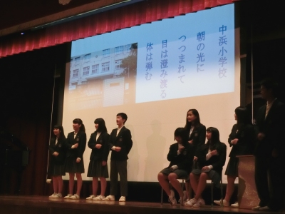 閉式後、3年生有志による創立記念劇「謌(うた)のかたち」【写真中・右】が上演されました。城陽中学校下の4小学校の校歌がうたわれ、昭和22年創立当時の城陽中学校歌の成り立ちを題材にした劇で、会場内のご来賓や生徒・保護者の方々からは、拍手喝采をあびていました。