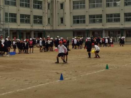 11月24日(木)、朝の児童集会では、なかよし班対抗「風船リレー」をしました。異学年ペアで、互いの背中の間に風船をはさんでリレーをします。カニさん歩きで進むペアもいれば、高学年が後ろ向きで進むペアもいます。なかには、途中で「パンッ!」と風船が割れてしまう班があり、和やかになりました。(本人たちはびっくりしたでしょうが・・・)