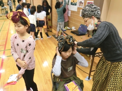 子どもたちは、エジプトの文字を読み取るゲームやフットボール、ナイジェリアの衣装を着るブースを体験しました。C–NETとともに、ゲームや対話型活動を通して世界の国々の文化について学び、積極的に英語でコミュニケーションを図り、楽しみながら活動するイベントになりました。