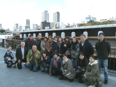 午前中は、大手前の「大阪府警察本部」【写真左】を訪ね、庁舎内の通信指令室や交通管制センターを見学しました。広報コーナー【写真中】で、府民の安全を守る警察の活動についてお話を聞きました。午後からは、天満橋八軒家浜【写真右】から屋形船に乗り、昼食をいただきながら、「水都大阪」の魅力を再確認し、見聞を広げることができました。