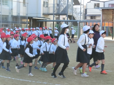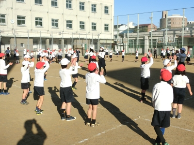 1月17日(火)始業前、今日から「耐寒スポーツタイム」がスタートしました。2月3日(金)まで、児童朝会・集会のない火・金曜日は「かけ足」を、水曜日は「なわとび」を行います。寒さに負けない強い身体づくりを目的に約5分間の運動を行います。