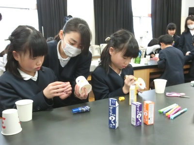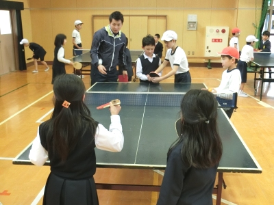 今日は、3年生の児童たちが、2班に分かれて教室を出発し、パソコン、マンガ・イラスト【写真左】、科学工作【写真中】、ミュージック、ボール運動、卓球【写真右】、バドミントンの順で、7つのクラブを見学させてもらいました。各クラブの見学・体験時間は5分間でしたが、上級生に優しく教えてもらって、とても満足げでした。