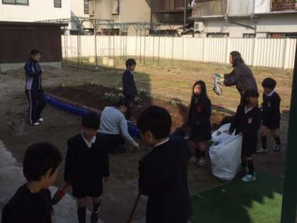 先日、1年生が寂しかった「学習園」を明るくしてくれました。一人一人の鉢にはチューリップの球根を、みんなの学習園にはパンジーを植えてくれました。ちょうど廊下の曲がり角から見えるので、たくさんの人が気づいて話題になっています。これから暖かくなると、チューリップの花が咲き、もっとにぎやかになることでしょう。また、校舎まわりの【写真右】やモクレンも、春の訪れを知らせてくれています。気がつかないうちに、ずいぶんと季節が移り変わっていってるのですね。