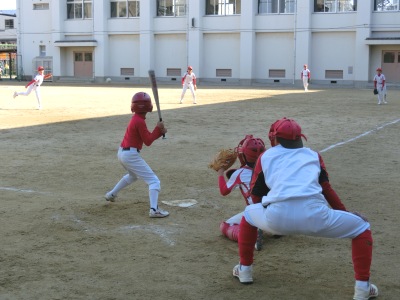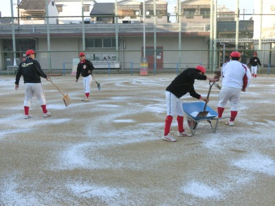 中浜小学校では、休日の日中や平日の夜間に「学校体育施設開放事業」として、さまざまな団体が活動しています。午前中、学校の運動場では大人のソフトボールチームが練習をしていました。午後からは、小学生野球チーム【写真中】が、元気いっぱいに活動をしていました。練習が終わって17時からから、少年野球チームの監督・コーチの皆さんが、運動場に「にがり散布」【写真右】をしていただきました。ありがとうございました。新学期に向けて、運動場も整備ができました。