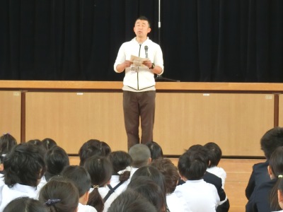 最後は、今年度前期の児童会運営委員(4・5・6年生の代表)【写真中】が前に出て、「楽しい学校にしていくために頑張ります」というあいさつがあり、激励の拍手がわき起こっていました。