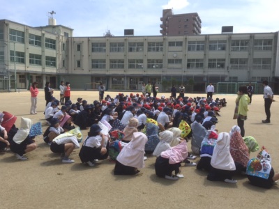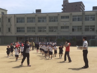 教頭先生や係の先生からは、「お・は・し・もを守る」※お(おさない)・は(はしらない)・し(しゃべらない)・も(もどらない)「どんなときでも命を守るために、深呼吸をしてから行動しましょう」というお話がありました。子どもたちは、火災を想定した避難訓練を真剣に行うことができました。