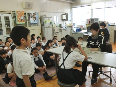 5月9日(火)2限、3年生の39名は「聴力検査」のため、保健室にやってきました。養護教諭から、ヘッドフォンの使い方とスイッチの押し方の説明を受けてから、静かに検査を行いました。