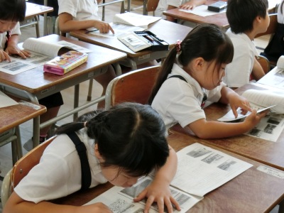 中浜小学校102年の沿革をまとめたスライドショー【写真左】と学習資料【写真中】で、歴史を振り返りました。102周年を記念してリニューアルした飼育小屋に、昨晩、カブトムシが20匹やってきたというお話もありました。現在、飼育小屋の「楽しいネーミング」を募集【写真右】していますが、これまで120通の応募がありました。締切は6月30日(金)ですので、どんどん応募してください。
