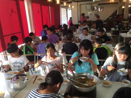夕食は名物料理「かも鍋」≪林間学習(20)≫