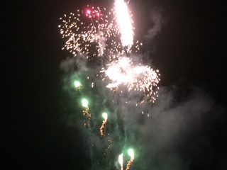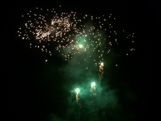 20時30分、キャンプファイヤーが終わって、全員が宿舎前に集まり、広場での「打上げ花火」を観賞しました。単発の打上げ花火の後、最後の100連発花火は壮大で、子どもたちから大歓声があがりました。