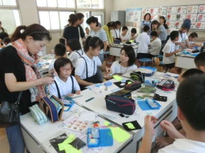 4年生【写真左】は算数で、「わり算の筆算を考えよう」で、86÷23の筆算の仕方を考えていきました。5年生【写真中】は家庭科室で、フェルトを用いた「小物づくり」の実習を行いました。保護者の方も児童の横に就いていただき、縫い方を教えていただきました。