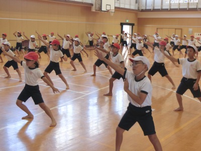 9月21日(木)3・4限、3・4年生の運動会団体演技の「南中ソーラン 祭りだ わっしょい!!」の演技指導で、NPO法人「大阪メチャハッピーにするプロジェクト」から二人の講師先生に来ていただきだきました。