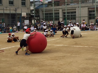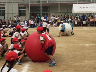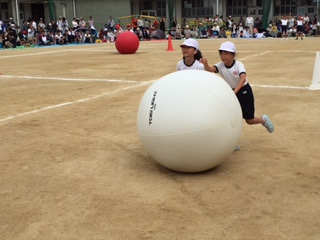 2年生の団体競技は、大玉ころがし「ゴロゴロGOGO!!」です。