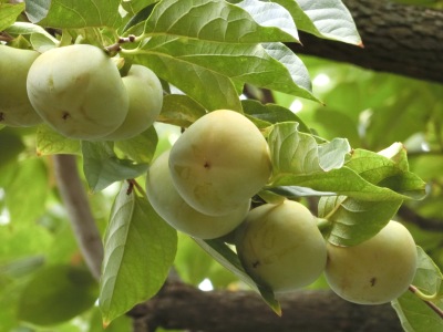 10月3日(火)、「天高く馬肥ゆる秋」‥‥秋は空気が澄み渡って空も高く感じられ、馬も肥えるような収穫の季節とされています。「きねんの庭」の木にも、カキ【写真右】やザクロがたくさん実りつつあります。