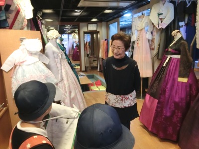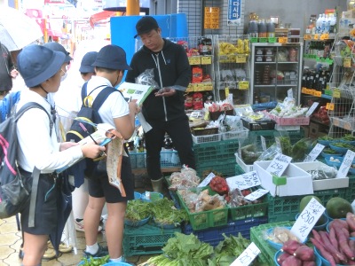コリアタウンでは、各班に分かれて、チマチョゴリ【写真中】やキムチ、野菜【写真右】などを売っているお店を見学しました。いろいろなお店を見学してお話を聞き、有意義な半日を過ごしました。
