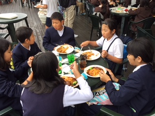 昼食は各班で、お気に入りのレストランでとりました。好きなメニューから選んでいただきます。カレーライスやホットドックは、人気メニューのようでした。