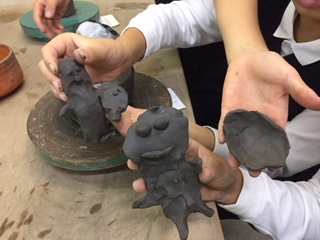 最初は湯呑みを作っていたのが茶碗になり、最後には皿になったりと悪戦苦闘。余った材料で粘土遊びをしている児童もいました。みんなの作品は、来年2月に「登り窯」で焼きあげ、卒業間近の3月上旬に学校に送られてきます。どんな作品になるか、今から楽しみです。