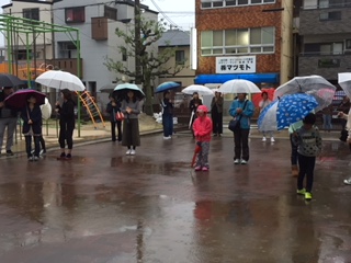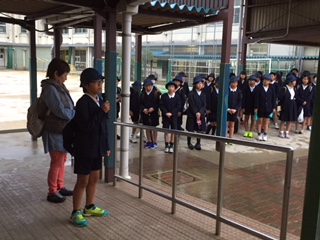 体育館は明日の衆議院議員総選挙の投票所の設営がされていますので、「帰校式」は渡り廊下で行いました。病人やけが人も一切なく、雨にもかかわかず予定したプログラムを無事に終えることができました。参加した全員が「一生の思い出となる修学旅行」になったと思います。子どもたちは、「楽しい思い出と学び」を、いっぱいお土産に持って帰ってきたことでしょう。