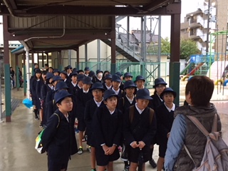 16時45分、予定より少し早く到着しました。南門にはたくさんの保護者の方々や教職員が出迎えてくれました。