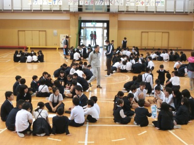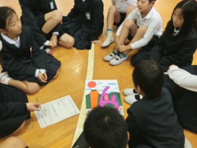 10月25日(水)始業前、臨時の「児童集会」を行いました。なかやし班にわかれて、来週の全校遠足「ハッピースマイルウォーク」の「班のめあてと遊び」を話し合いました。
